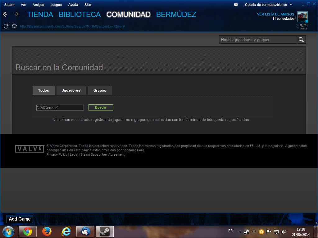 Te estoy buscando por JMGenzor, y el resultado que arroja el cliente Steam es que no se encuentra nadie registrado bajo ese nombre.