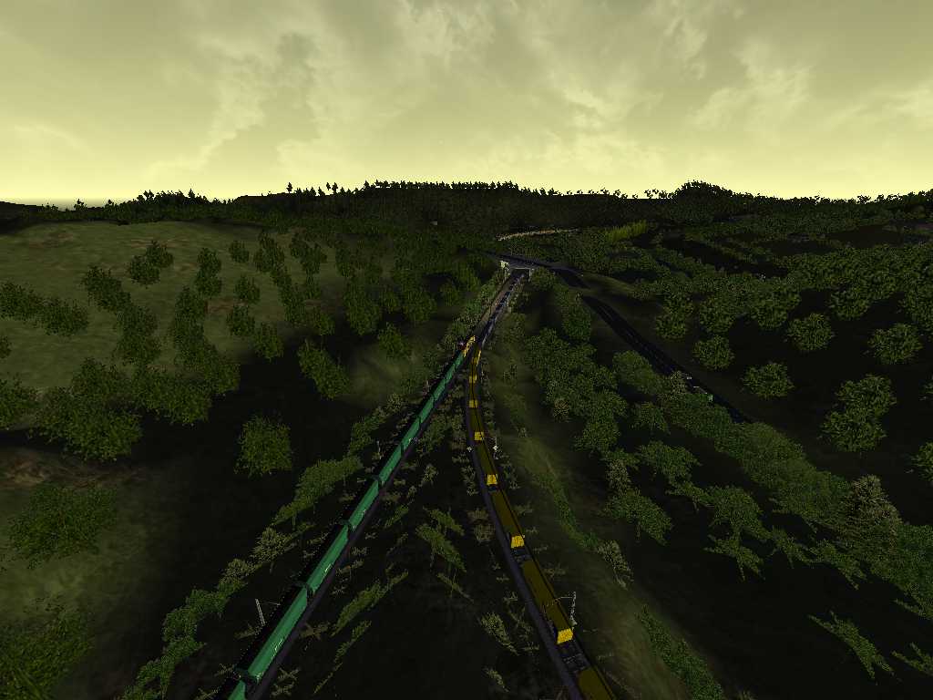 Les explico las capturas que no tienen nombre: la primera es la vista aérea de cuando nos cruzamos, camino a Soto de Rey, con un tren de containers, la segunda entrando al primer túnel del recorrido y nos cruzamos con una 440, y, la última estamos detenidos en el Apartadero de Hunosa vía 12 para salir con nuestro carbonero hacia Soto de Rey y debemos esperar el paso del tren proveniente de Oviedo.