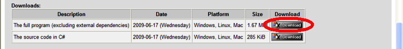 Descargar allí donde dice The full program (excluding external dependencies) .