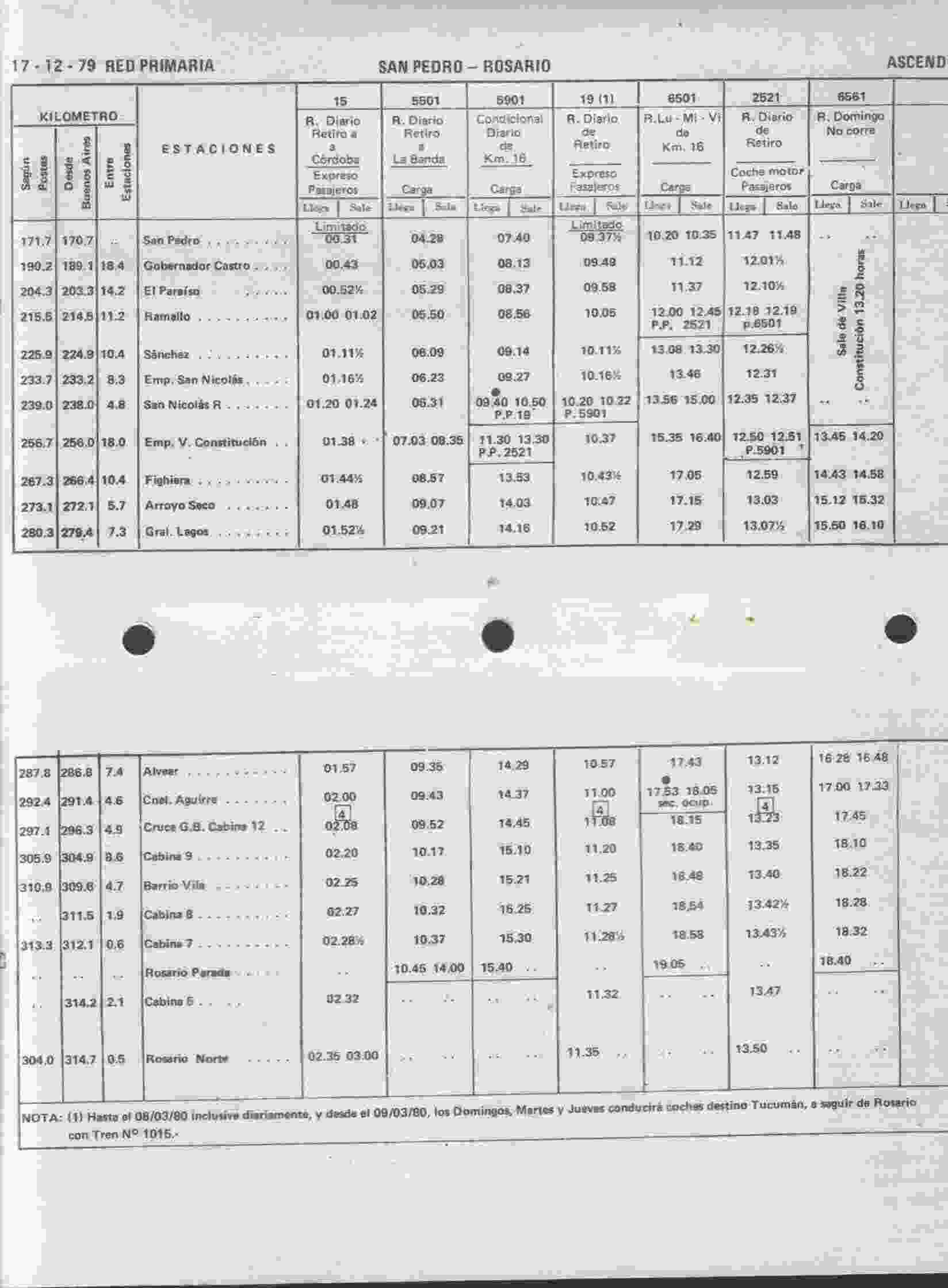 Aquí te envío, del itinerario de 1979 del Mitre, el horario del Coche Motor
