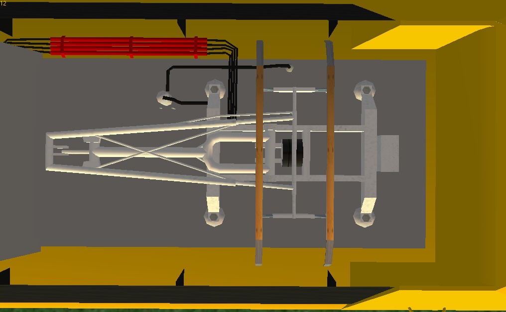 Tengo que advertir que la maquina consta de unos 17000 poligonos ( muy pesada ) y que esto puede que no guste. En cuanto a su actual esquema de colores GL, habrá de esperar a que se acaben los procesos de modelado 3d, para luego con un simple repaint hacer la version Gl. Como vereis lleva diferentes pantos ( Faiveley AM 32 A, con dos mesillas diferentes, y un Shunk parecido al de la 252 pero conla base diferente derivado de que las japos llevan 4 soportes pal panto ), lo que conlleva que junto a los diferentes testeros, logos, reformas y destrozos, junto con la alternancia de pantos, pueda llegar a tener unos 6 o 7n modelos de gata en Taxi, acorde cada uino con una epoca. Esto se que supone un engorro, pero espero que conforme hagais actividades sepais elegir una u otra en relacion al año o epoca aproximada de la actividad; para ello ya os pasaré debidamente un documento con los estados de la gata en el tiempo. Aparte quería aclarar que aunque haya piezas que se vean muy poco durante la simulacion por ser muy ocultas ( valga el caso de los bogies ), y esto sea la causa del acusado numero de poligonos, no voy a quitarlos, puesto que esta maquina intenta ser un fiel reflejo de la real.