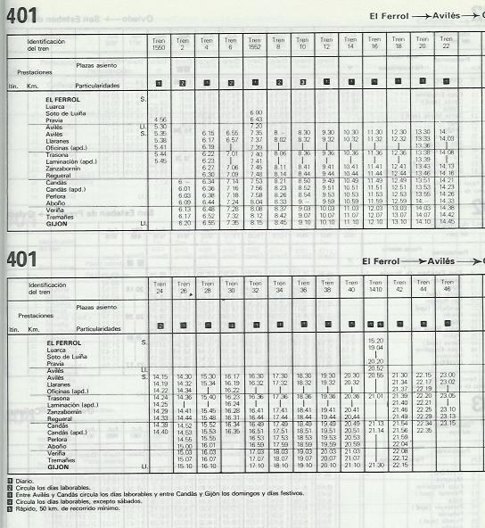 A petición de Óscar Narón pongo los horarios entre Ferrol y Gijón de 1982.