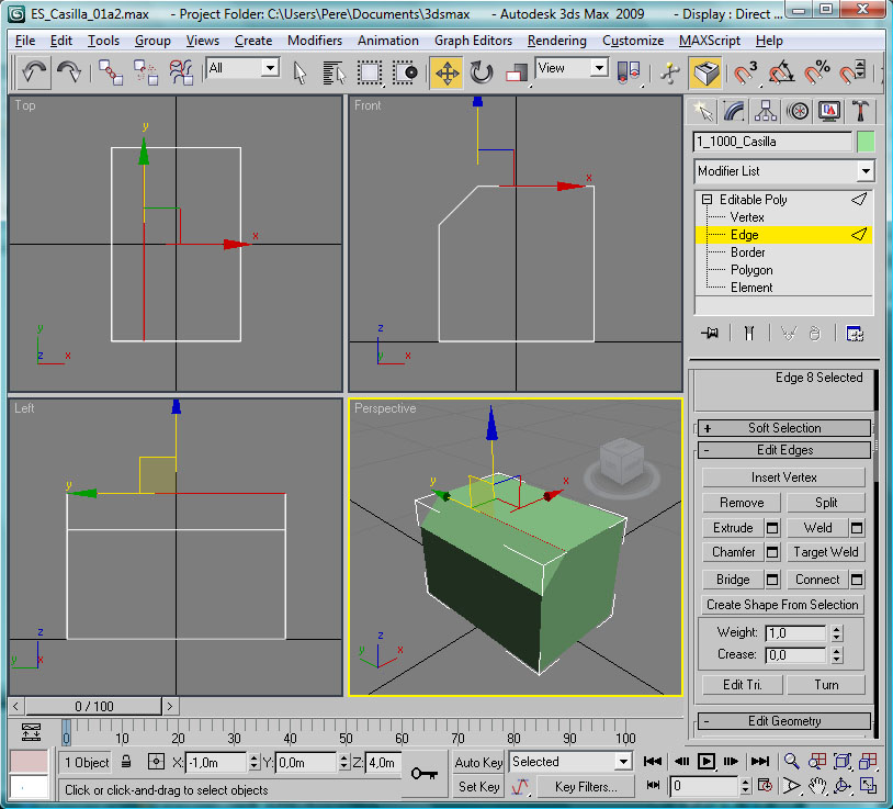 A destacar también que si hacemos clic con el botón izquierdo del ratón sobre el nombre del viewport, este pasa a ser el viewport activo sin perderse la selección del objeto actual. Esto es importante para poder editar un objeto de forma continuada en todos los viewports, como veremos más adelante.