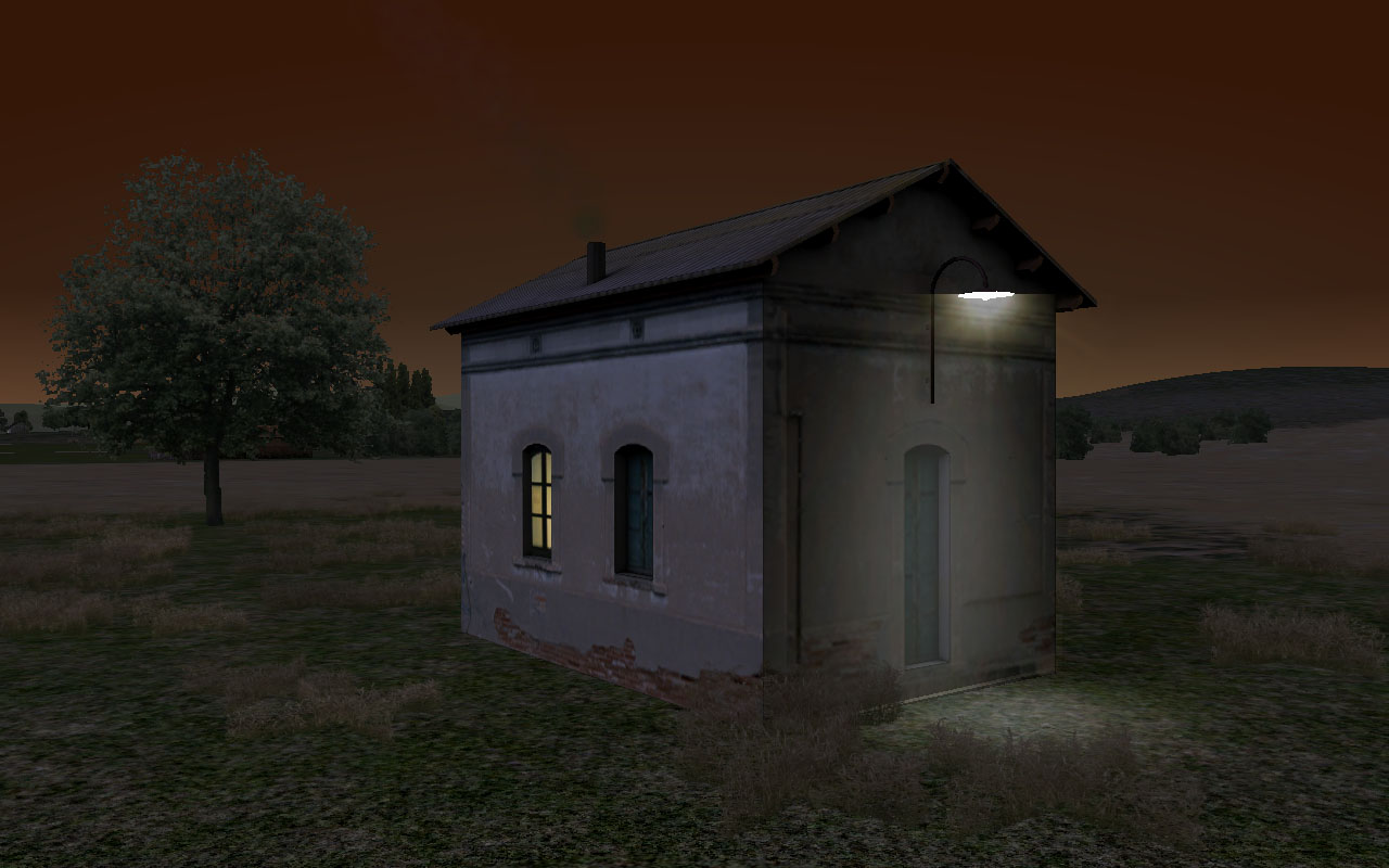 Hay que señalar que, al igual que podemos usar el nombre de nodo "fx_night" para objetos que tan sólo se visualizan por la noche, también disponemos del nombre de nodo "fx_day" que realiza la acción contraria, es decir, se visualiza únicamente durante el día. Ambos nodos son alternativos y en el preciso momento que uno se desactiva el otro se activa, por lo que combinados podemos representar con ellos elementos que tienen diferente aspecto de día o de noche.
