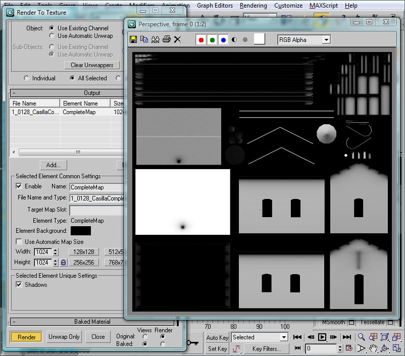 Ahora que ya tenemos los dos elementos de la casilla para sus respectivos LODs, ocultaremos, tal como hemos hecho antes, el LOD lejano 2_1250_Casilla, dado que este elemento ya tiene la malla que queremos. Nos dejaremos visible el LOD cercano 1_0128_Casilla para trabajar en él e incrementar su detalle como corresponde a su visión de cerca.