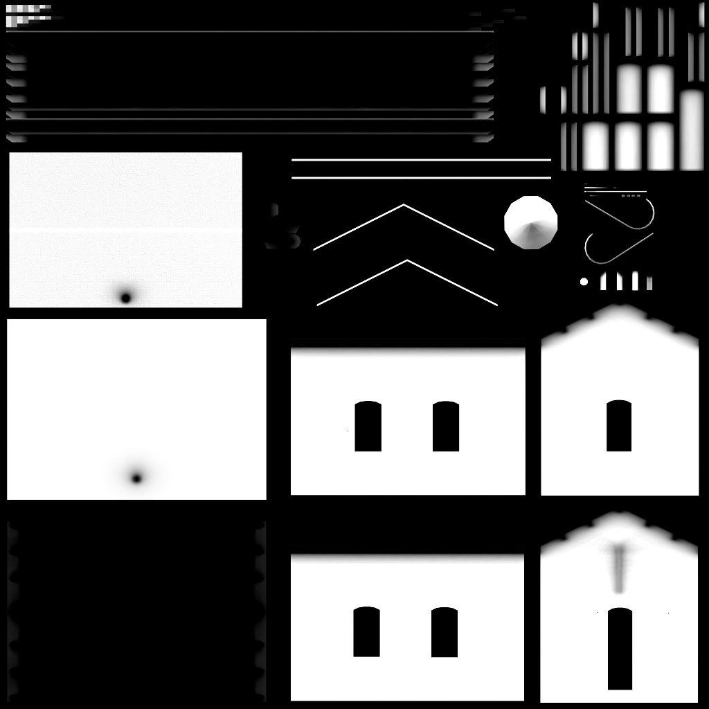 Está dividido en una matriz de 4x4 (la matriz podría ser de otras dimensiones) que permite tener 16 texturas diferentes para el humo, aunque en este caso, por simplicidad, la textura es la misma en todas las ocasiones. Además incorpora un canal alpha para dar semitransparencia a la textura: