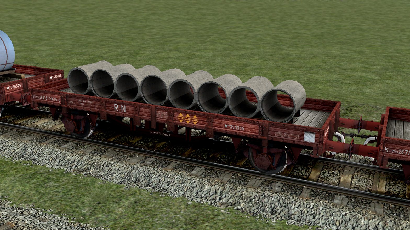 Gracias a LBA por esos estupendos topes (que ya llevan muchos vagones ibéricos) Adrián (R_E_N_F_E) por la caja del vagón y a jjlor por la carga de tubos de hormigón que les van muy bien.