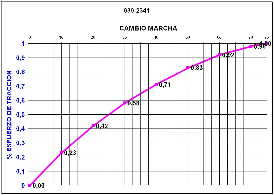 Este es un caso curioso que demuestra que las físicas de RW se diseñaron pensando en el vapor. En este tipo de tracción las relaciones de esfuerzo de tracción con velocidad y cambio de marcha se hacen sobre el valor 1 para potencia máxima y reduciendo el mismo en proporción.