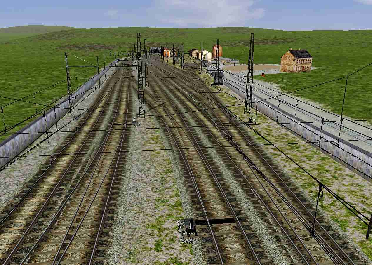 En este momento, la totalidad del trazado ferroviario de vía ancha ya está concluido, y ahora estoy acabando de poner los marcadores de vía. Muchos y muy necesarios, pues esta ruta esta concebida con una doble finalidad:
