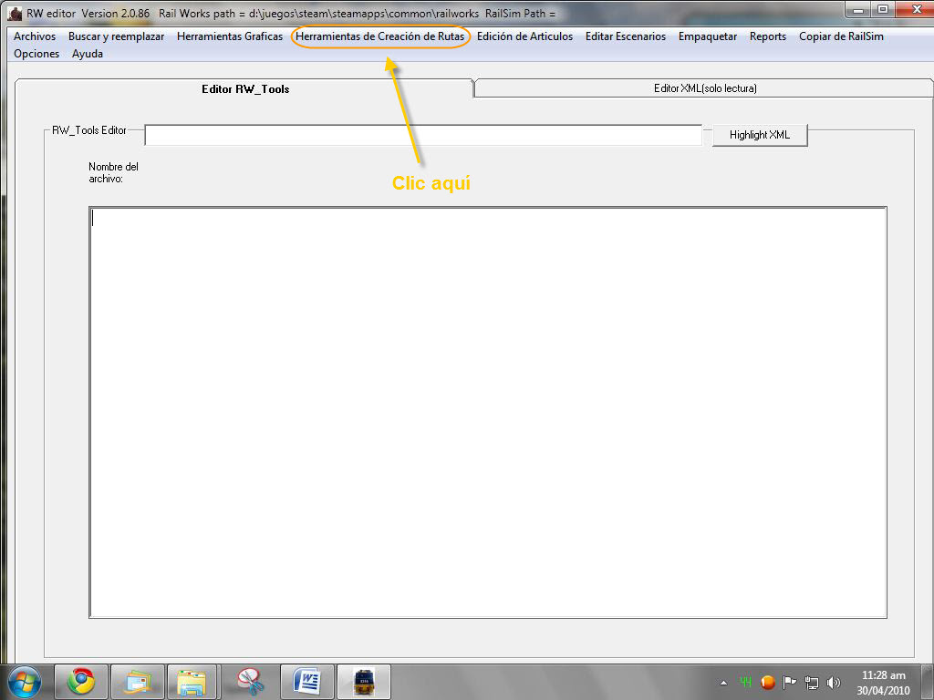 1º, en el RWTools, haces clic en «Herramientas de Creación de Rutas»: