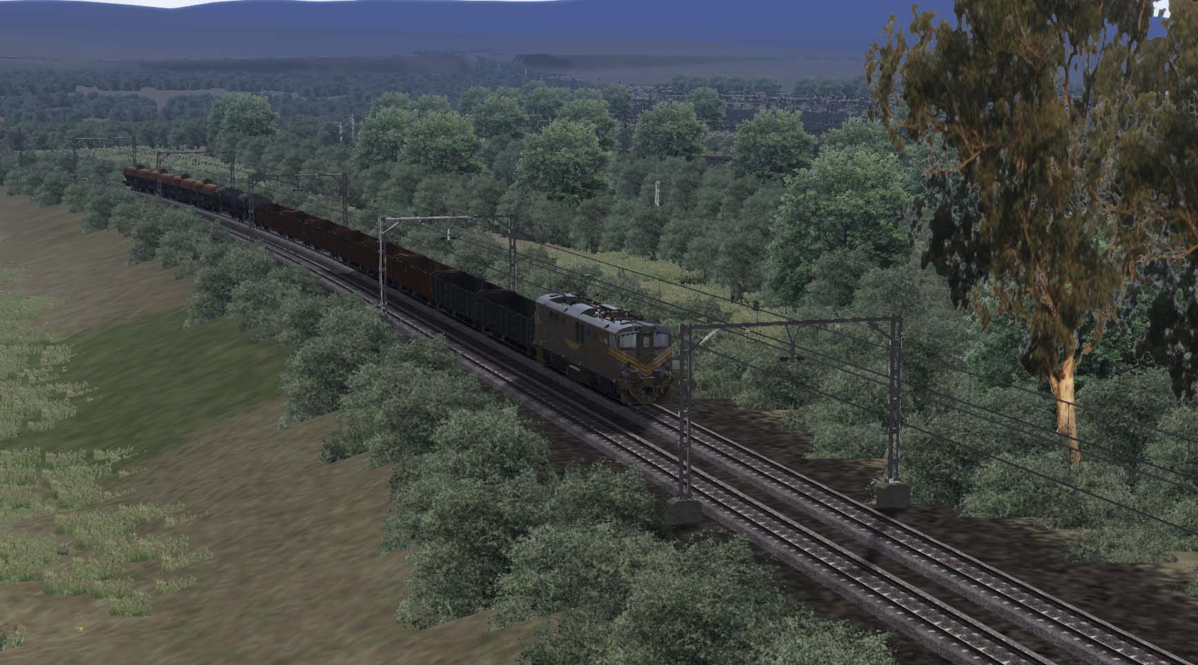 Hoy se ha puesto a al venta en Steam esta ruta, que intenta reproducir una línea de los ferrocarriles sudafricanos de vía estrecha (1,067 mm). Viene con una locomotora eléctrica en varias libreas, una serie de vagones y algunos coches. la línea es de 191 kilómetros de largo, toda en vía doble, y muy en la línea de los ferrocarriles de aquel país, es más similar a un ferrocarril de vía ancha en capacidad y tráficos que a lo que aquí entendemos como vía estrecha.