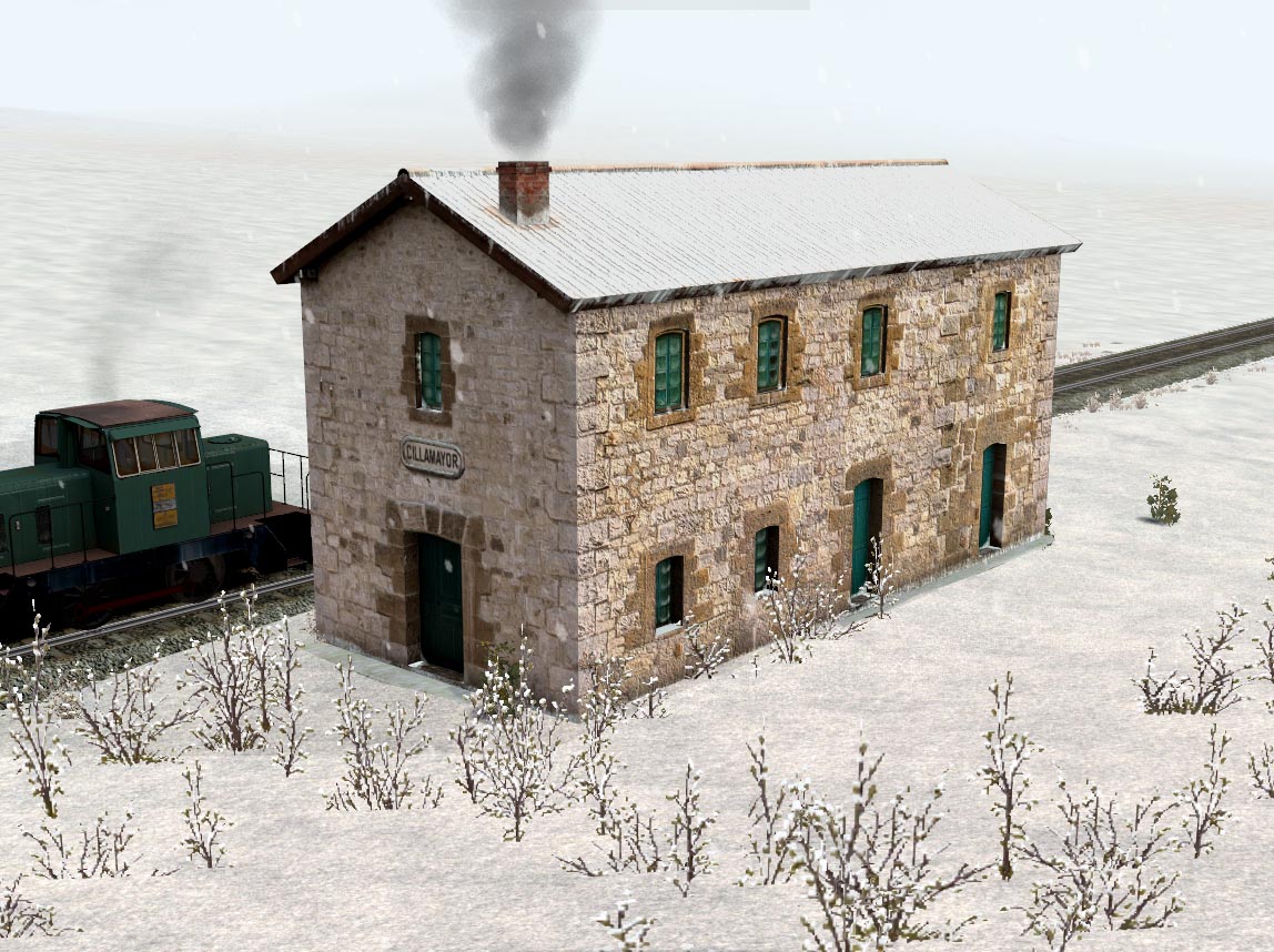 Una vez aplicadas las cosas que permite el RW (render to texture, mapas de normales, sombras, humo, etc) la estación de Cillamayor ya va cogiendo el ambiente que merece.