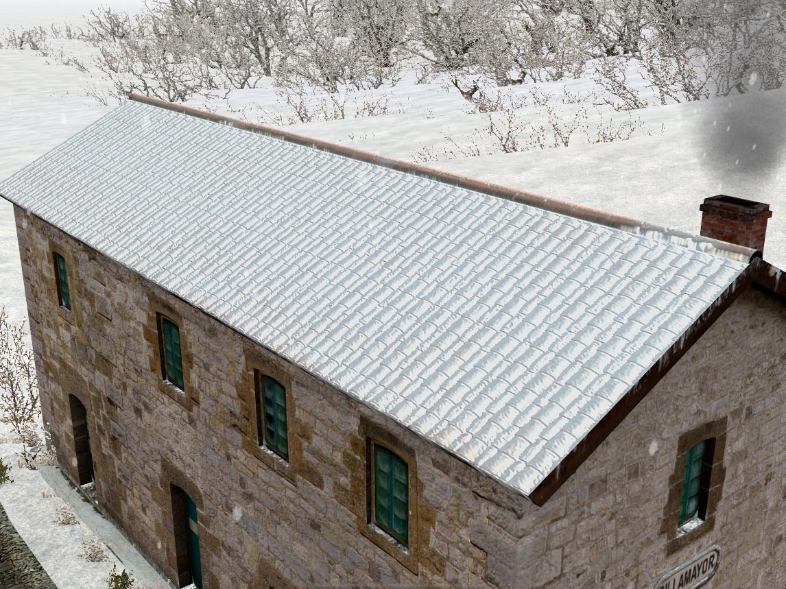 Precisamente, las ventajas del bump ese, se ven bien aquí, en estas tejas nevadas. Se trata de un polígono plano.