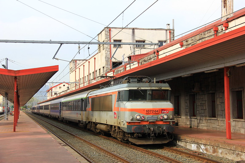 Las dos fotos anteriores no son mías, Las he encontrado en la red, la del expreso Paloma azul en la plataforma Flickr (autoría de Domingo Kauak) y la de la catenaria en una página de imágenes. En los diferentes videos de Youtube se muestran imágenes de Hendaya, Irún (lado español y francés) y San Sebastián y ahí se pueden apreciar muchos detalles de ambiente ferroviario (catenarias, postes, señales, material francés y español...).
