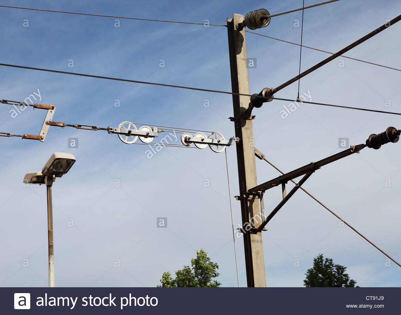 Un detalle de la catenaria utilizada en líneas francesas.