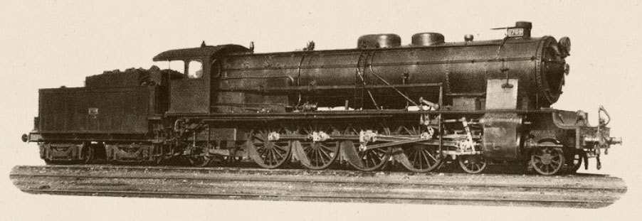 Volvamos un poco hacia atrás y retomemos la situación de los trenes expresos en MZA, servidos por las “Montagna Regina”. La compañía se planteó en 1935, y frente al incremento de las cargas que dichos trenes habían sufrido, el disponer de una locomotora alternativa a las 1700 pues en consecuencia éstas se iban quedando cada vez más limitadas en cuanto a prestaciones. Para ello, MZA convocó un concurso de 10 máquinas que fue adjudicado al diseño de MTM de una locomotora basada en la serie 1700, pero incrementando su eficacia al solicitar una locomotora de mayor peso adherente y alta presión, elevando el timbre de la caldera de los 14 kgs/cm2 a los 20 kgs/cm2 y el grado de recalentamiento hasta los 400ºC, conservando unas ruedas de 1.750 mm como sus antecesoras. Al configurar, por tanto, una locomotora de alta velocidad se demandó también que ésta fuera carenada.