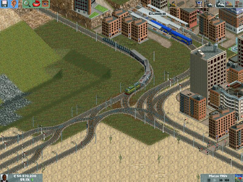 Os explico, me he creado un mapa totalmente llano, con muchas industrias. Para ver hasta donde podría llegar y a cuantos trenes podría hacer jaja. Lo empece en el año 1995 justo, con ciudades pequeñas apenas de 500 habitantes. Ahorra llevan algunas mas de 60.000 habitantes, y lógicamente las estoy encerrando para que no crezcan porque madre mía. Llevo unos 130 trenes, 14 aviones y unos 20 tranvías.