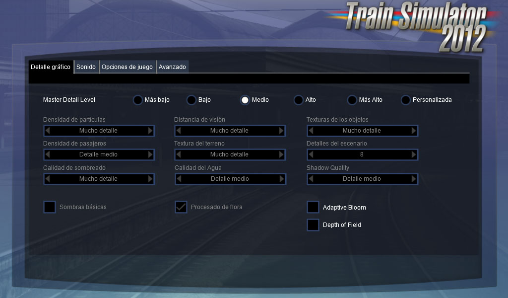 ... selecciones TSX (el nuevo motor gráfico) y la configuración básica (Basic Settings) puesta a Medio (y que él aplique los parámetros que quiera). Supongo que correrás el simulador en pantalla completa, en cuyo caso indica la resolución de tu monitor, aunque en la desesperada situación de que al final no consigas que el juego vaya suficientemente suave siempre puedes seleccionar una resolución inferior.