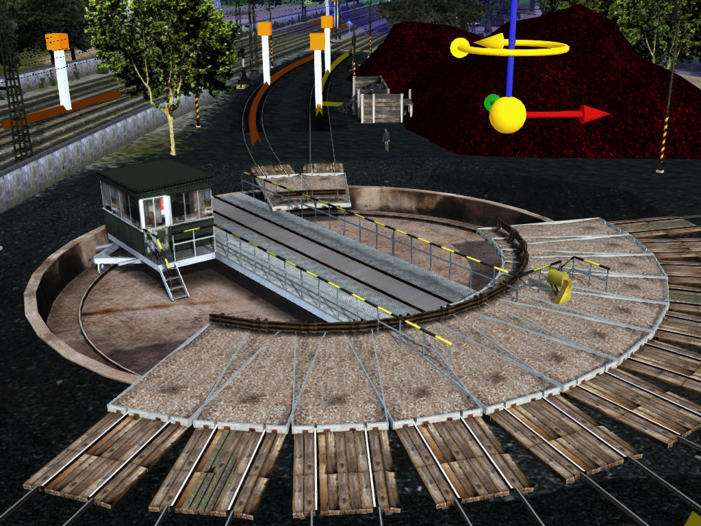 La cosa es curiosa, en modo libre, los puentes giratorios funcionan correctamente como cualquier desvió. Te plantas frente el puente y pulsas la tecla "G" y el puente se orienta correctamente, cargamos la loco en el y pulsando de nuevo "G" giramos a derecha, pulsando "Shilf + G" gira a izquierdas, pero cuando creamos una actividad nos saca el dedito, e incluso desaparece la rotonda al intentar cargar la actividad como se puede ver en la imagen adjunta.
